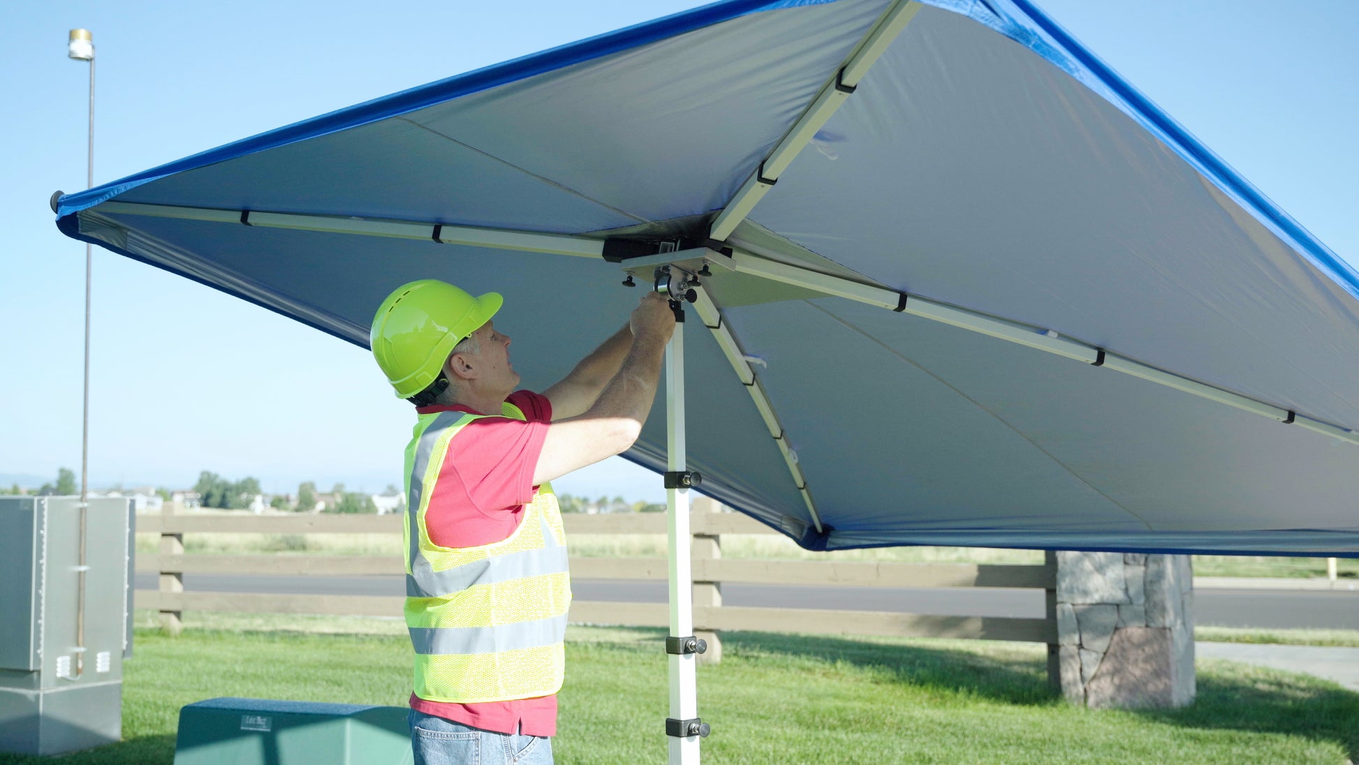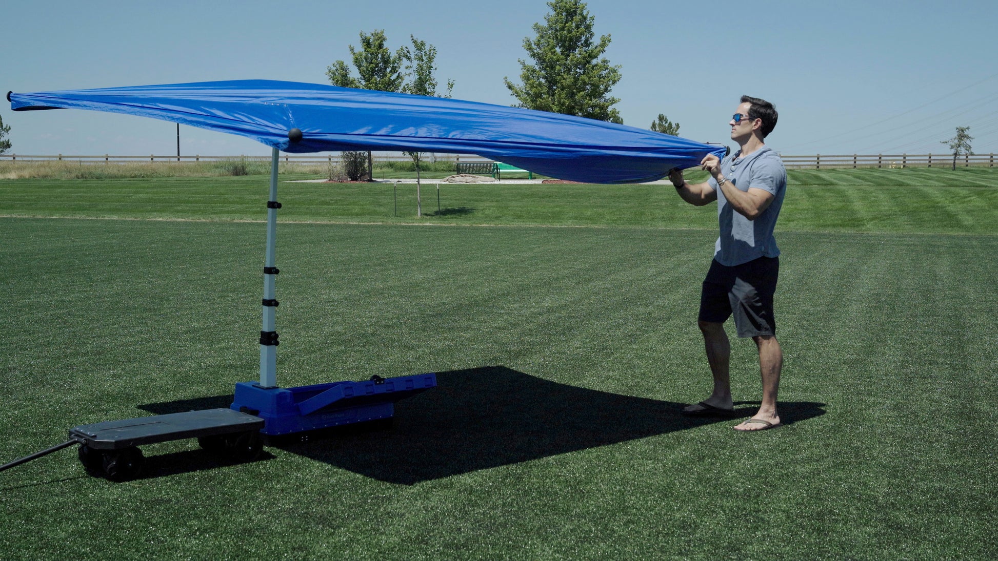 An all-purpose, lightweight, portable shading system that is fast and easy to set up! Rugged construction and all-terrain wheels make it possible to transport your belongings all in one trip! The Shade Wagon is the ultimate tool for any one person to throw some shade!
